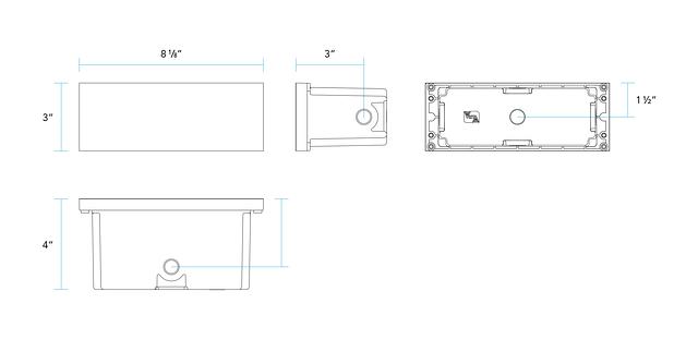The RIS-1503 Rough-In Section is crafted from injection-molded, fiber-reinforced polymer, incorporating threaded brass inserts for robust construction. Designed for flexibility, this housing allows for the rough-in-section to be installed ahead of time, facilitating on-site workflow by enabling the addition of internal components at a later stage. It features four ½” NPT conduit entry hubs, complete with a knockout membrane for versatile wiring options. The RIS-1503 is adaptable for various installation environments, including poured concrete, block construction, and both IC and non-IC drywall configurations. The door cover will sit proud of finished surface by 5 /8”. For a flush door cover appearance, the Flush Tray (FT) mounting accessory must be used.